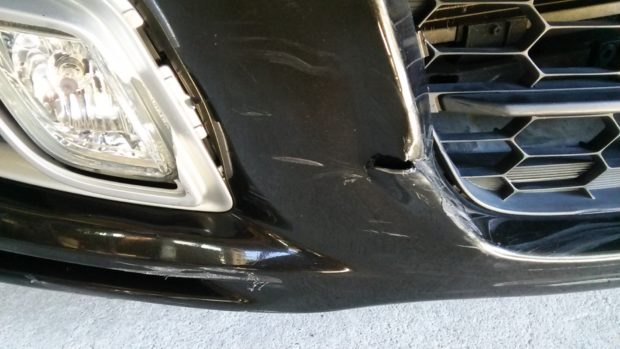 バンパーは切れて変形がひどくてぶつかっている場所が
