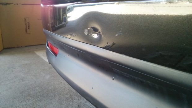 後ろも真ん中のあたりもぶつかった衝撃でふくれて