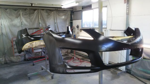 乾燥後は付属部品たちをフロントバンパーにつけて、
