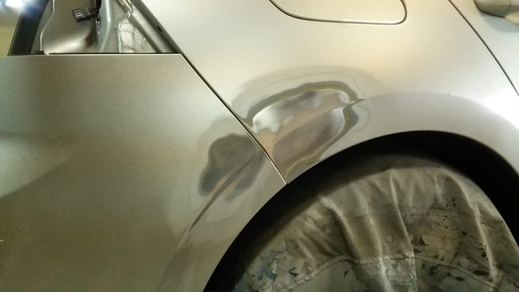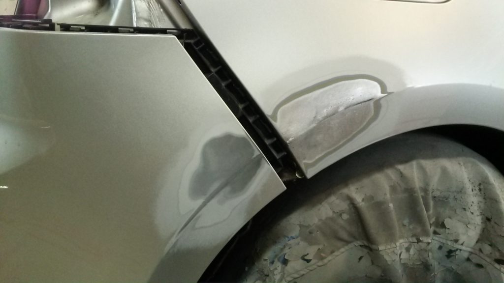 キズ・へこみの所をエアー工具で鉄板をむき出しにして