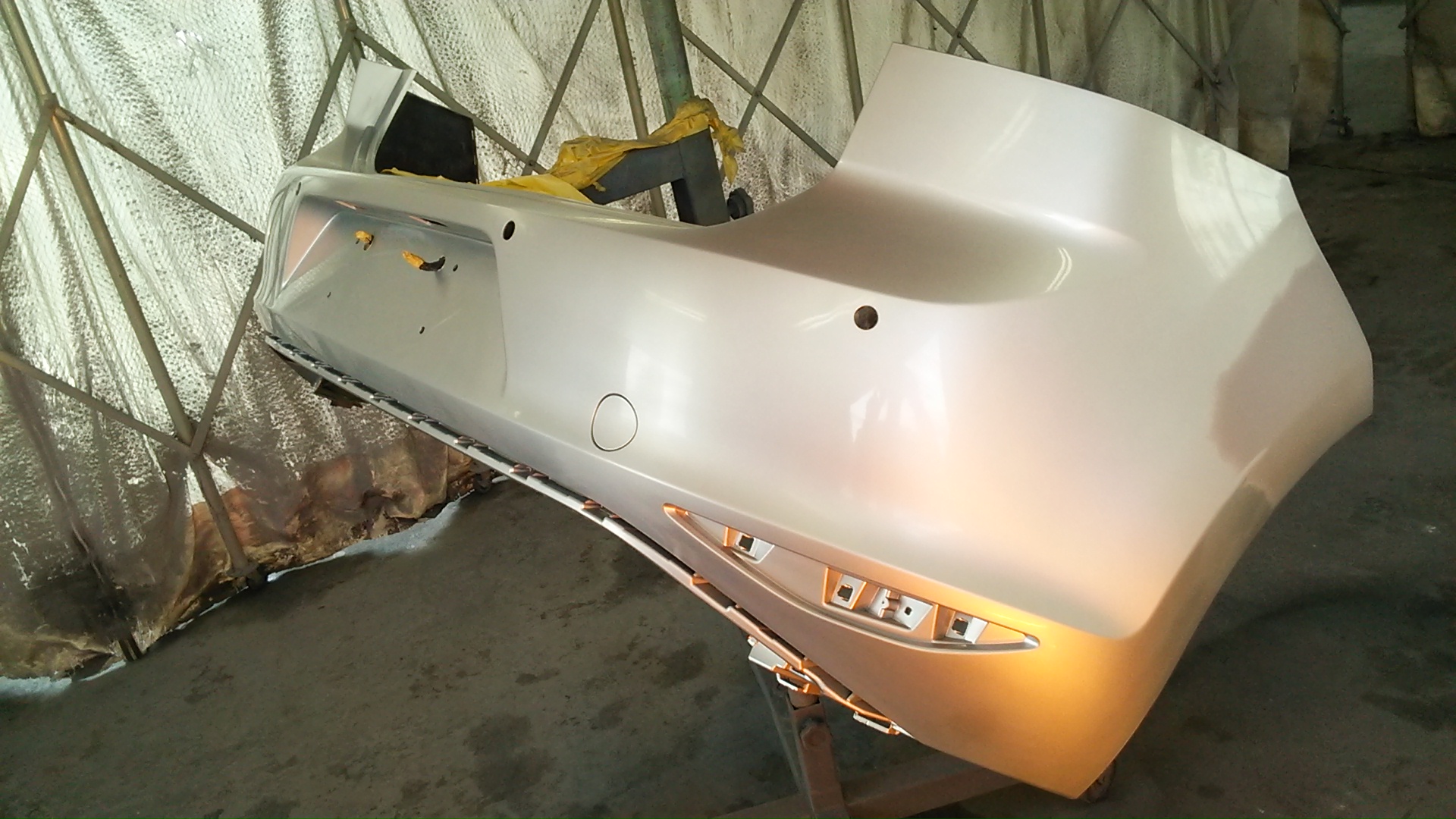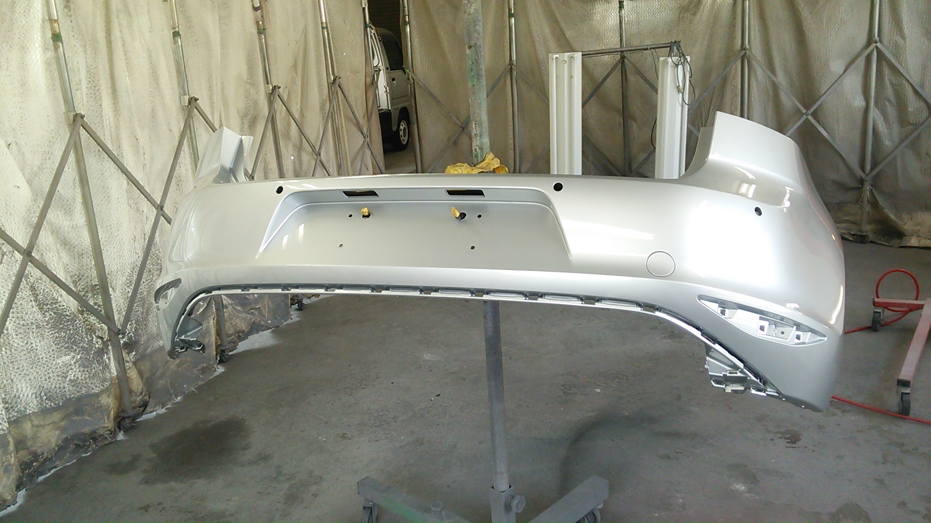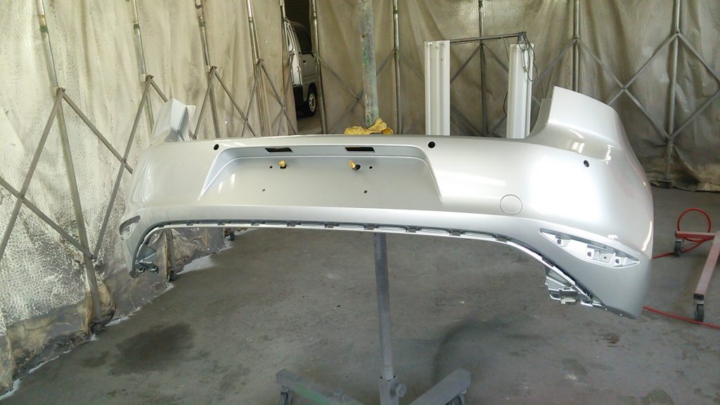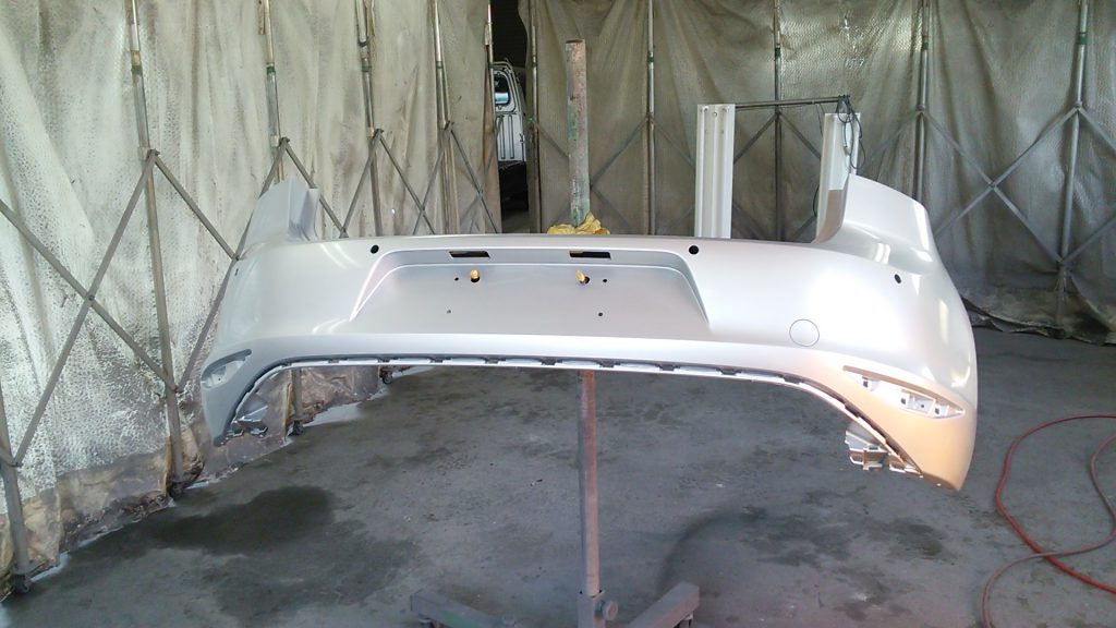 リヤバンパーは塗りやすいように、単体にして吹きつけます。