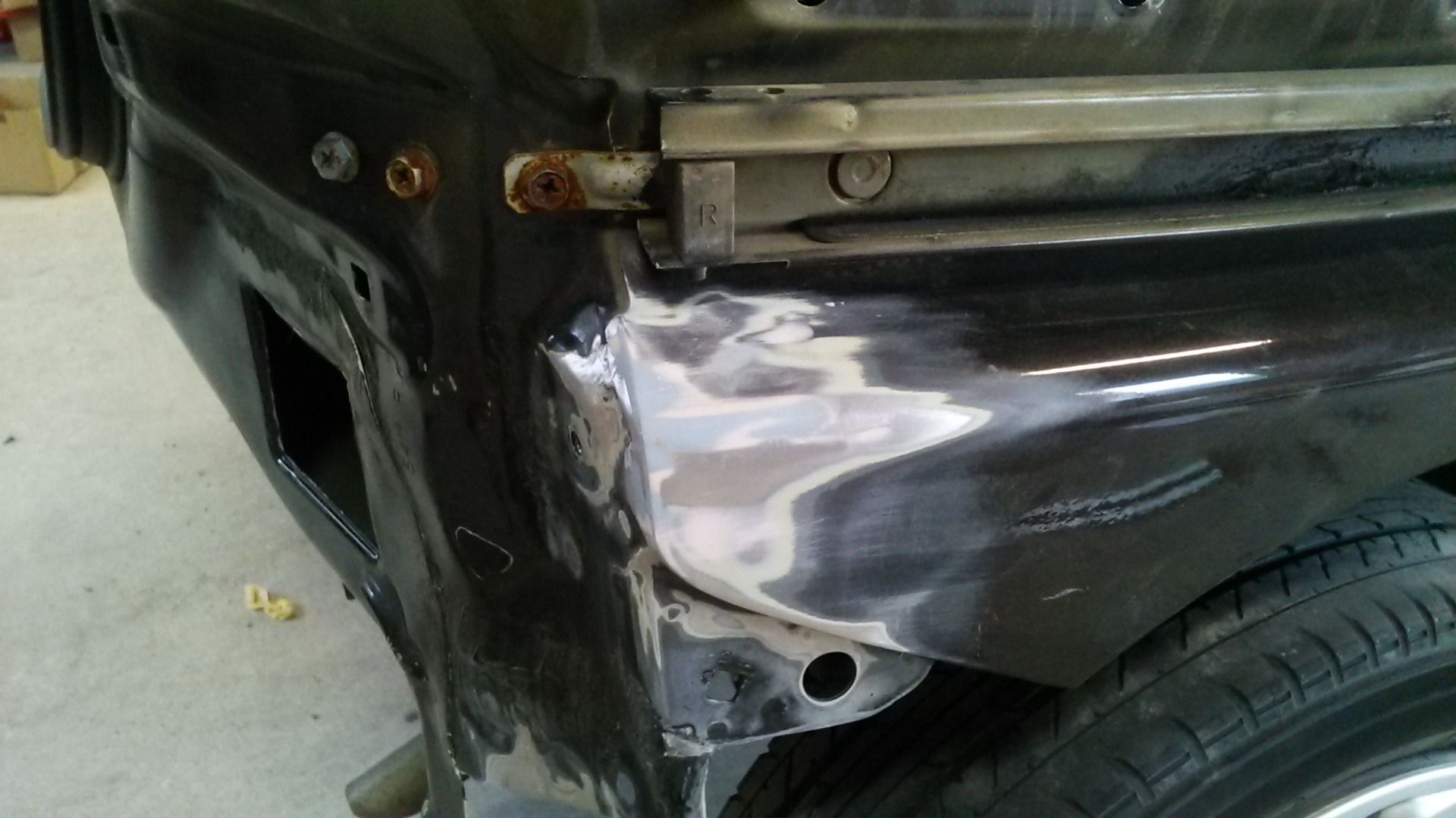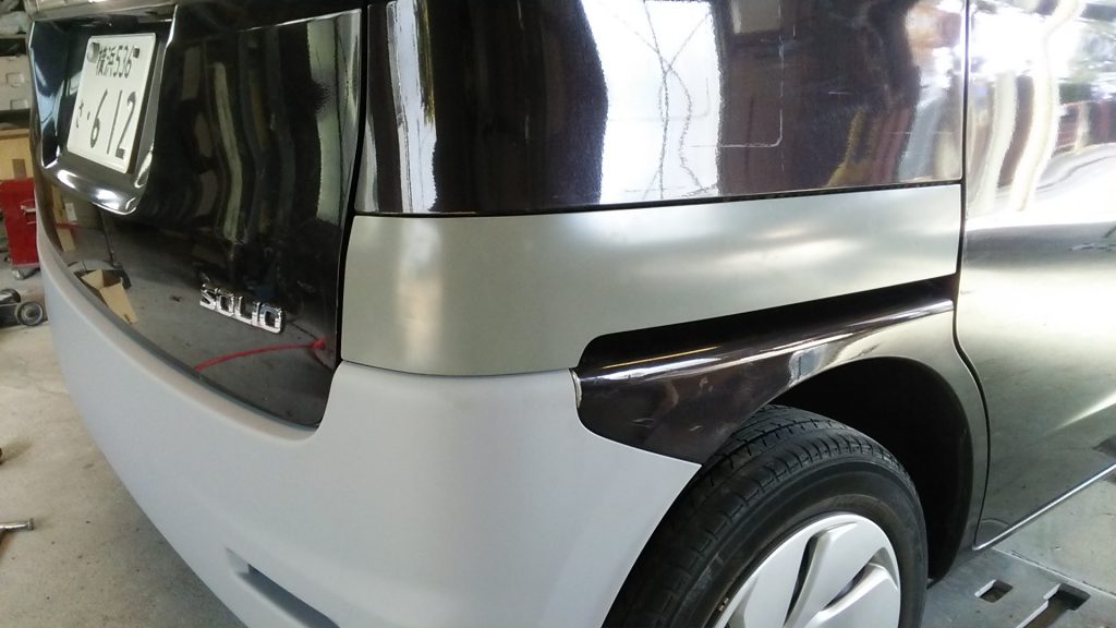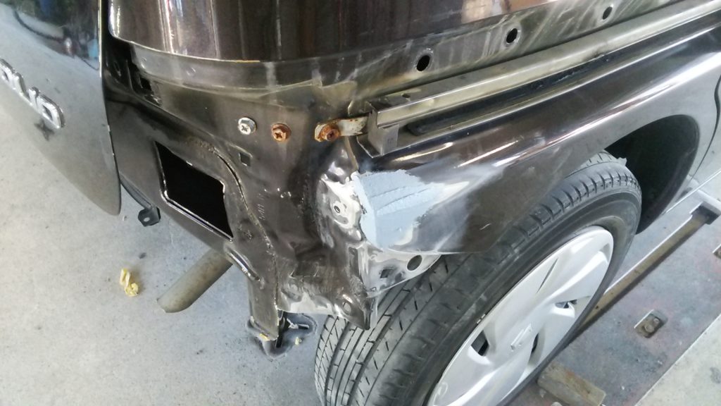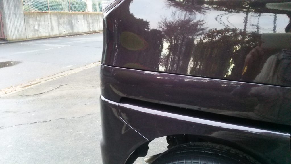 もう一度、取り外して今度はタイヤの上のパネル(クォーターパネル)をパテを付けて