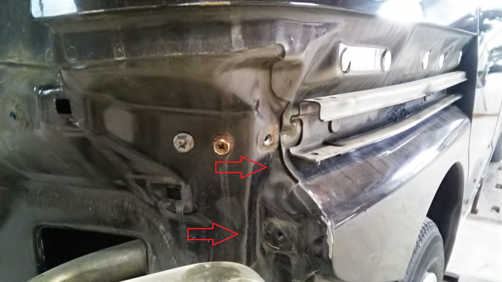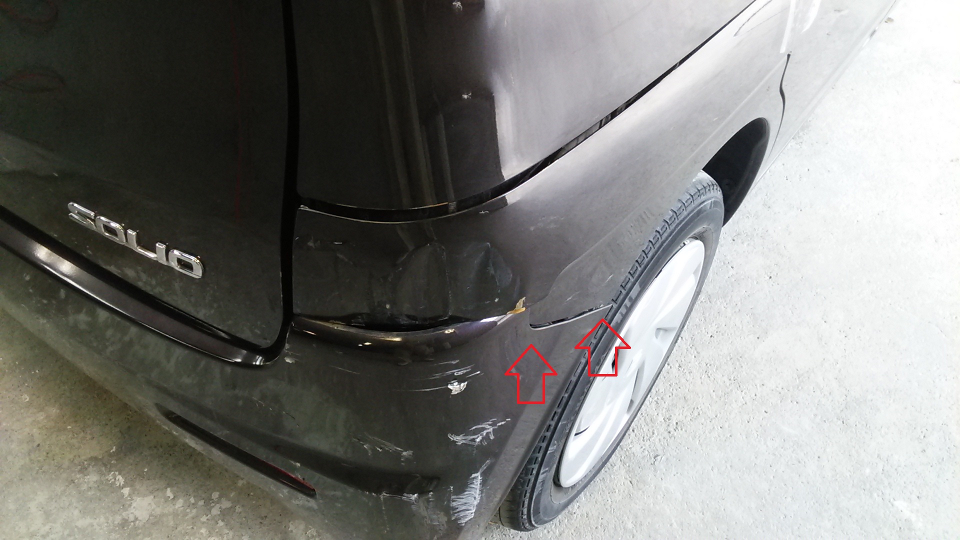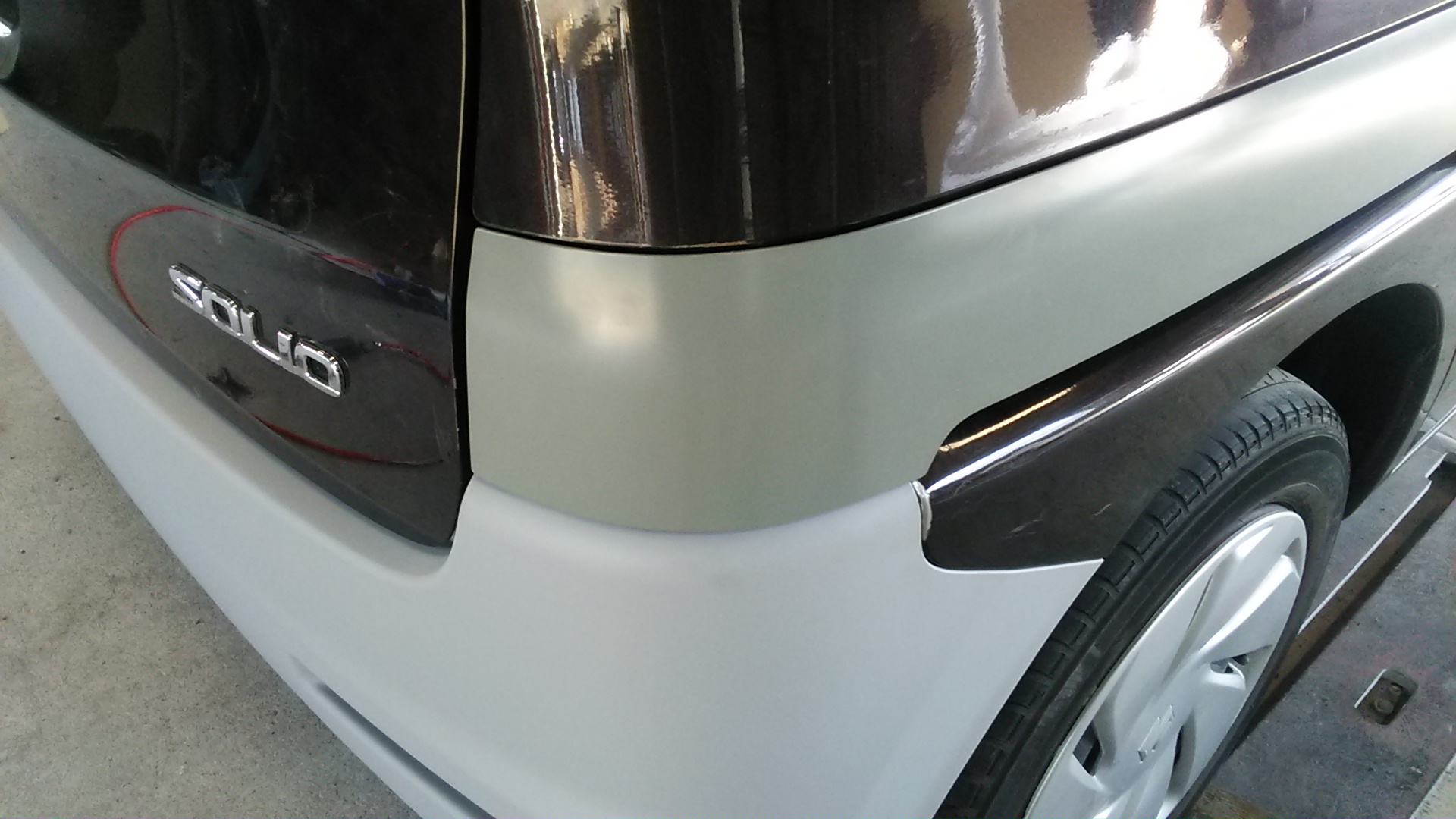 もう一度、取り外して今度はタイヤの上のパネル(クォーターパネル)をパテを付けて