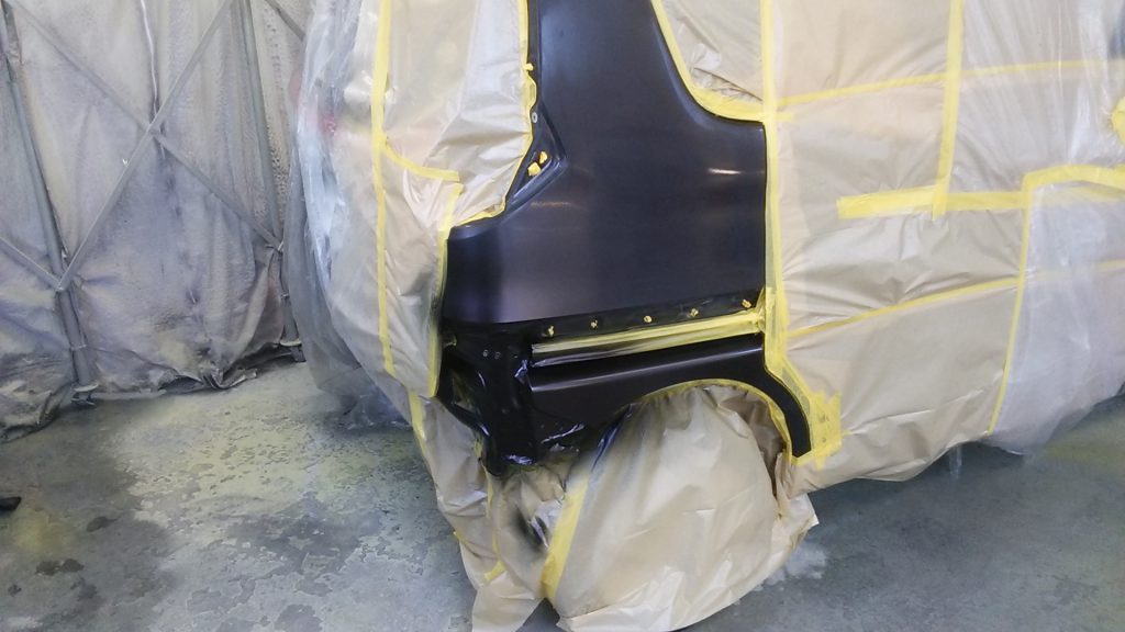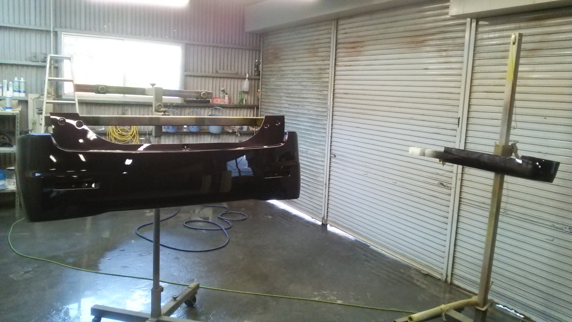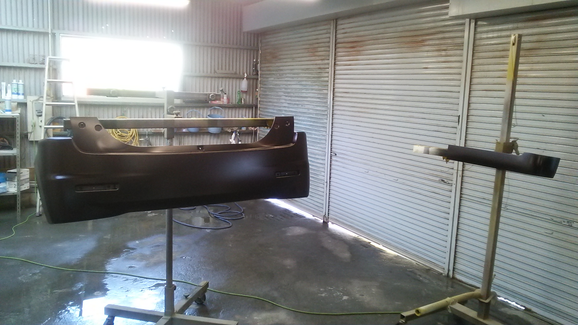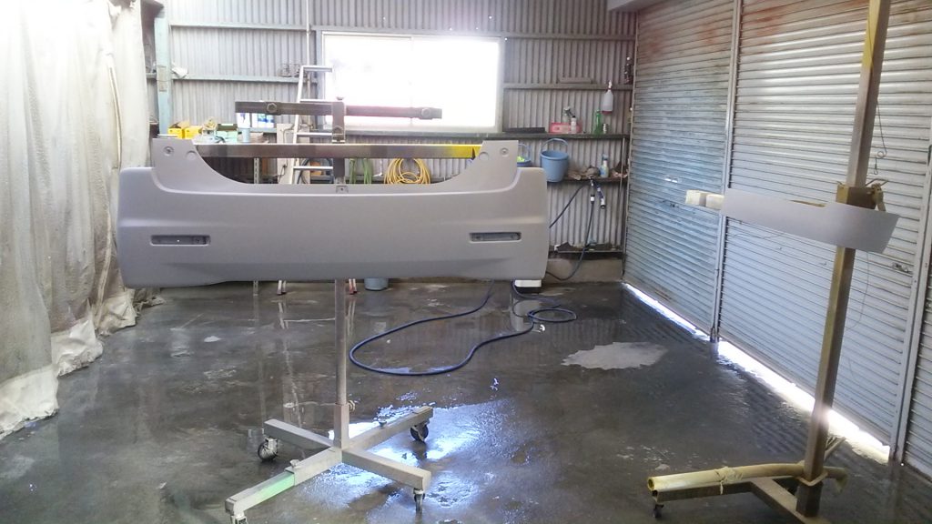 バンパー・サイドパネルは塗りやすいようにセッティングして塗装していきます。