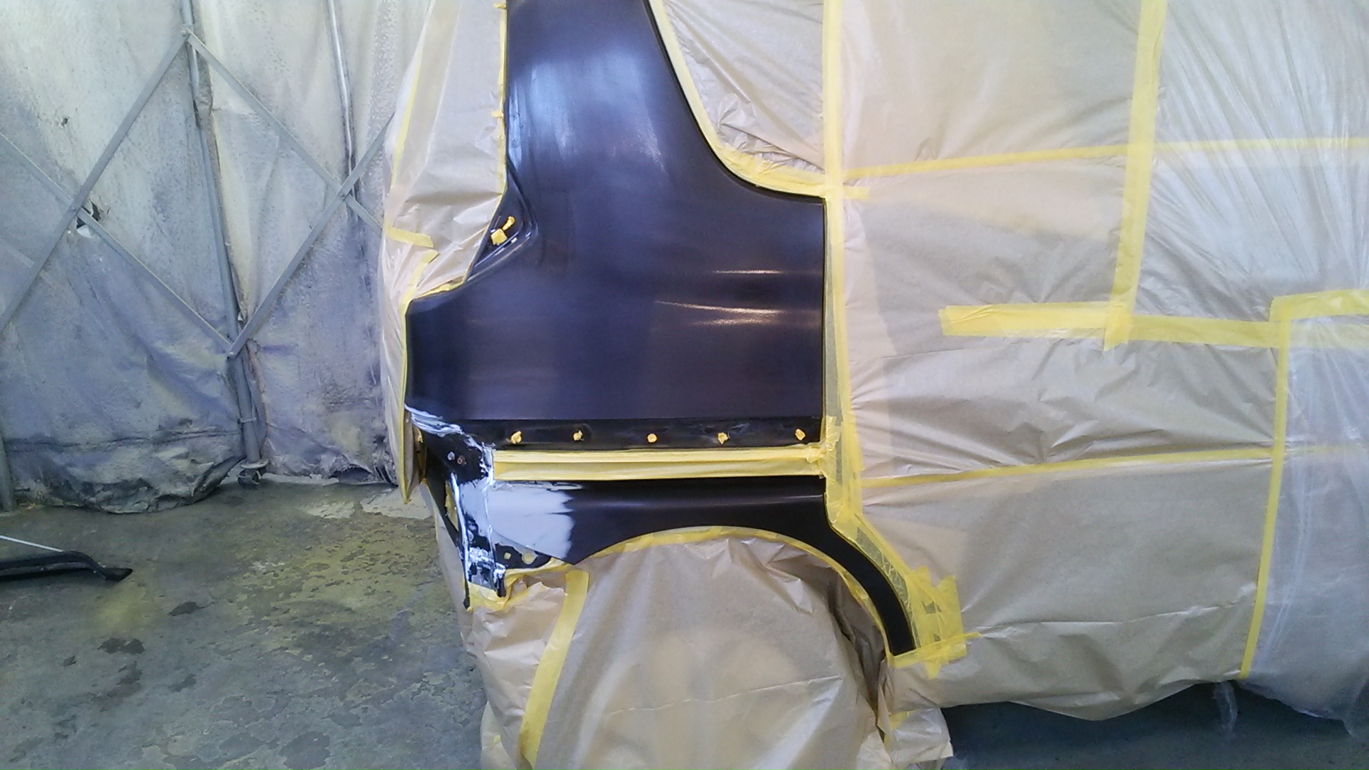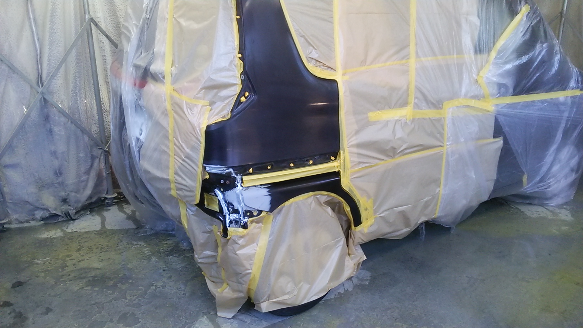 車の色に合わせて調色したらブースに入れ