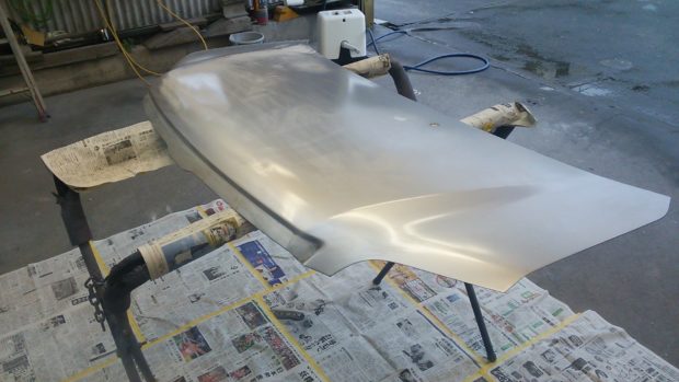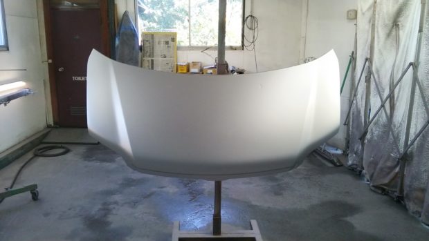 全て取り除いて、水で洗い流してから、次は中塗りのサフェサーを吹き付けます。