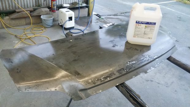 ボンネットに乗っているのが、剥離剤です。これを掛けると