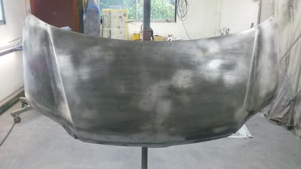 ボンネットを取り外し、メッキモール類の付属品をさらに取り外し